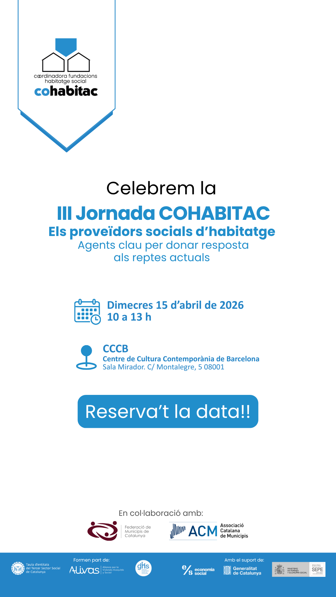 La jornada quiere presentar al conjunto de agentes que intervienen en la promoción de vivienda social, la propuesta de proveedores sociales de vivienda que COHABITAC impulsa conjuntamente con la alianza estatal ALIVAS, con el objetivo de contribuir al debate sobre los instrumentos necesarios para ampliar el parque de alquiler social en nuestro país.